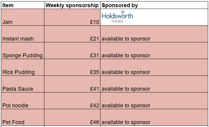 New for 2026! Chesterfield Foodbank is inviting local businesses to sponsor A Year’s Supply of the essential items that go into our emergency food parcels. Through our Tiered Corporate Sponsorship packages, sponsors receive public recognition for their support, with opportunities for positive PR including press releases and photo features. Gold Level Sponsors can also choose to display their logo on the Chesterfield Foodbank van, seen regularly across the Chesterfield community.